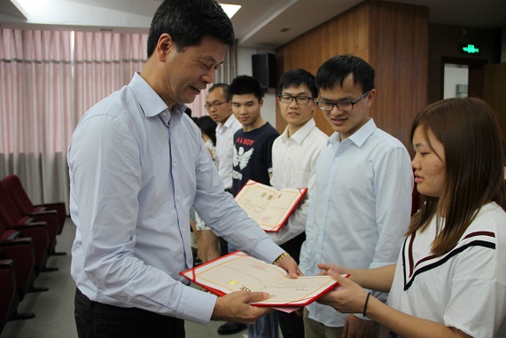 圖為 王耀輝董事長(zhǎng)給學(xué)生頒獎(jiǎng)